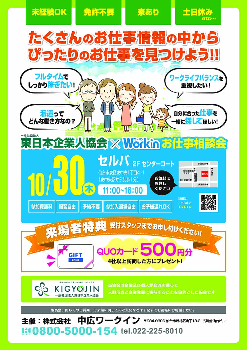 10/30(木)11:00~16:00 場所:セルバ2階センターコート