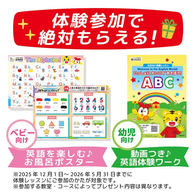 体験参加でアルファベットポスターまたは英語体験ワークがもらえる