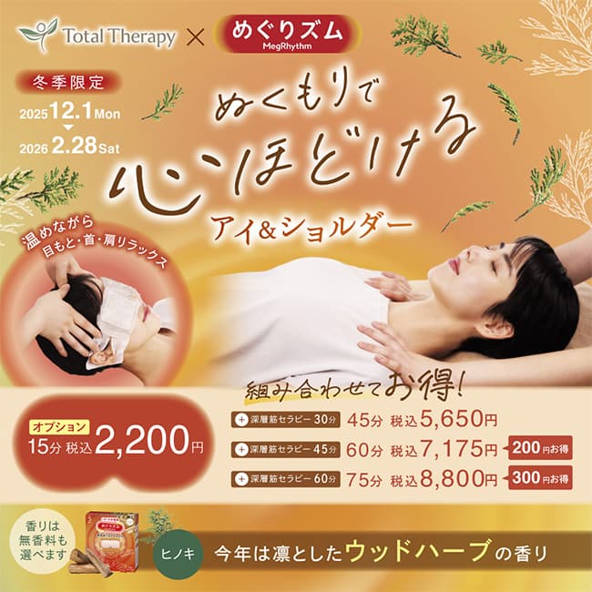 今年はジェルケア2回にパワーアップ!首まわりがよりほぐれ、ジェルの香りもいっそうお楽しみいただけます!